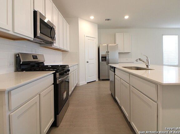 Brand-new 4BR/3BA home with an open layout, quartz countertops, stainless steel appliances, slow-close cabinetry, and a large center island. All bedrooms are on the main level, including a spacious primary suite with walk-in closet, dual-sink vanity, and step-in shower. A private secondary ensuite plus two additional bedrooms with a shared full bath offer flexibility for family or guests. Upstairs, a loft provides the perfect space for a game room, media room, or home office. Enjoy a covered patio and low-maintenance backyard. The new community will feature resort-style amenities including a pool, clubhouse, playground, and fitness center. Served by Schertz-Cibolo-Universal City ISD schools, with easy access to Cibolo, Schertz, New Braunfels, I-35, and JBSA Randolph. Just minutes from Santikos Entertainment, EVO, and the upcoming 72-acre Schertz Station development featuring Portillo's, CAVA, Dave's Hot Chicken, Panera, and more - the area is booming with dining, shopping, and family fun. All breeds of pets considered case-by-case. Non-smoking home. Schedule your showing today!