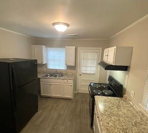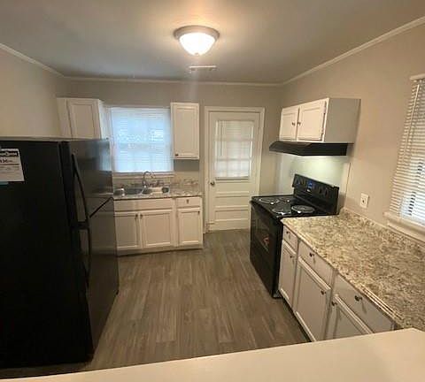 Plenty of cabinet spaceSleek black appliancesScreened porchCozy layout