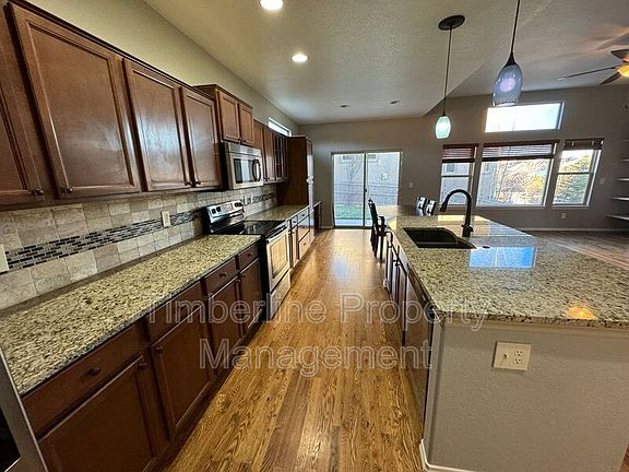 Welcome to this amazing corner lot ranch style home in Cordera, located in the desirable area of District 20! Step inside this beautiful 5 bedroom home, and be amazed at the wonderful layout and space this home offers. On the main level, you will find a bedroom located right off of the main entrance and a full bathroom. Walk through the large formal dining room which has built in cabinets to additional storage. Beautiful kitchen with granite counter tops, stainless steel appliances and a large island, and large living room with gas fireplace provide ample of space for everyone. The large master suite is just around the corner with a en suite 5 piece bathroom, and custom closet. Laundry room is also located on the main floor along with the large 2 car tandem garage, perfect for storing a 3rd vehicle or using the same as a workshop! Downstairs you'll be amazed at the massive family area with a wet bar and another gas fireplace! 2 more additional bedrooms and a full size bathroom are located off of the family room. A cool feature of the basement is the mother-in-law suite! Situated on a corner lot, this home offers extra space and a sense of exclusivity. The highly regarded D20 Schools are just a stone's throw away, providing excellent educational opportunities for your family. Additionally, you'll love the convenience of being close to shops and restaurants, making errands and dining out a breeze. Don't miss out on this incredible opportunity to make this house your home. Contact us today to schedule a viewing and experience the charm and convenience of this home. Dogs allowed. Amenities: sprinkler system, central air, fireplace, fenced yard, d20 schools, corner lot, close to shops and restautants