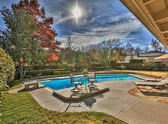 Immaculate home w shopping, hospitals,& major highways nearby! Situated on over half acre (STORAGE BUILDING W ELECTRIC, PLUS TIKI LOUNGE.) Master recently updated w free standing soaking tub, separate walk-in shower, dual sinks, laundry drop, granite, separate walk-in closets, new high-end carpet. Built-in buffet w travertine counter top-formal dining. RESORT backyard setting with hot tub & putting green,cov patio. Garage w workbench. MUST SEE