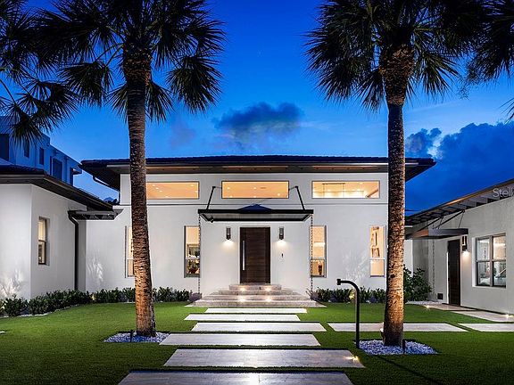 Welcome to the ultimate lifestyle of contemporary waterfront living in South Tampa’s prestigious Beach Park neighborhood. This exceptional one-story estate, completely rebuilt from the studs in 2022 by the renowned Crescent Homes Inc., offers an unparalleled combination of luxury, smart technology, and effortless functionality. Situated on 100 feet of canal water frontage just minutes from the open bay, this fully renovated residence is move-in ready and designed to impress at every turn. Inside, the home features four expansive bedrooms, each with its own private ensuite bathroom, as well as a dedicated home office—perfect for work-from-home living or quiet retreat space. The interior is finished with luxury vinyl flooring, Gaggenau appliances, solid-core doors, floor-to-ceiling tiled bathrooms, and a zero-entry primary shower. The oversized mudroom entry from the epoxy-coated garage adds convenience, while a built-in safe in the primary closet and a pass-through laundry window add thoughtful touches of practicality. All interior walls are insulated for sound and energy efficiency, and a central vacuum system is integrated throughout. A true smart home, the residence is outfitted with a full Control4 automation system to manage lighting, music, blinds, and even tiki torches—all seamlessly operated. Lutron lighting and automated Palladiom window treatments provide ambiance and privacy at the touch of a button. Energy efficiency is paramount, with a full-home solar system that keeps the average monthly electric bill around $100 (with natural gas), a Generac backup generator, whole-home filtration system, two reverse osmosis units, and three HVAC units controlling six distinct zones for climate comfort. Step outside to your private resort-style oasis. A saltwater lap pool with an in-floor Paramount cleaning system is the centerpiece, surrounded by a covered lanai with a built-in Lynx outdoor kitchen and grill. Both the front and back yards are fully turfed and designed for active families, featuring a soccer net, trampoline, aerial silk stand, and workout area. Outdoor amenities include a natural gas fire pit, mosquito repellent system, outdoor shower with access from the primary suite, outdoor audio system, tiki torches on automated control, and underground irrigation supported by a water retention system. The concrete barrel tile roof ensures long-lasting durability and timeless curb appeal. For boating enthusiasts, the waterfront setup is second to none. Enjoy a brand-new seawall (2022), over 1,100 square feet of covered dock space with electric, water, and audio, two boat lifts (10,000 lb and 15,000 lb), and a Jet Ski lift. A gated driveway and pedestrian entrance, fingerprint entry system, and a 10-camera security system provide complete privacy and peace of mind. This home has NEVER flooded and represents a rare opportunity to own a fully updated, technologically advanced, and impeccably designed one story waterfront estate in one of Tampa Bay’s most desirable communities of Beach Park. From top-tier finishes to thoughtful outdoor experiences, this property truly has it all—on a single-level floor plan that offers effortless elegance and comfort.