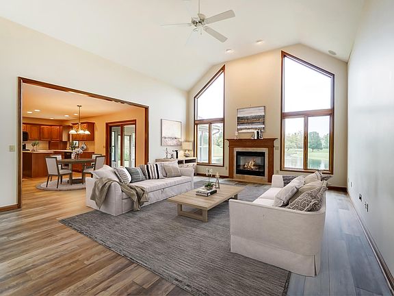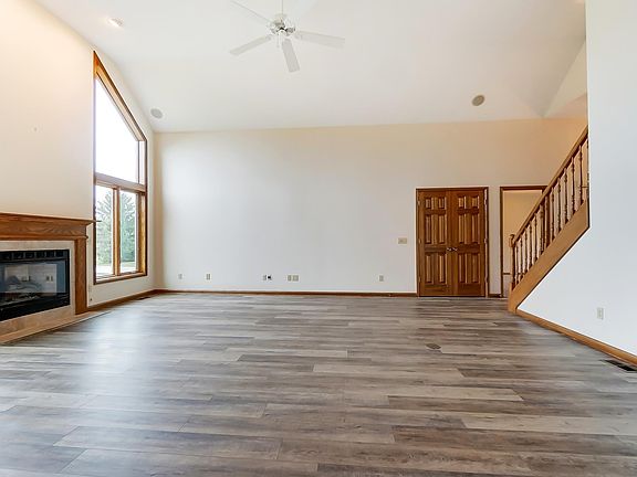 Seller is offering $7,000 towards Buyers Closing Costs or Rate Buy Down! Step into this four bedroom home and be greeted by vaulted ceilings in the living room, with a cozy gas fireplace and expansive windows that frame a picturesque view of the backyard lake. The first-floor bedroom suite includes a spacious bathroom, walk-in closet, and a jetted tub. Upstairs, three additional bedrooms await, complemented by a full bathroom and convenient attic access for storage. Recent upgrades, including a new roof, kitchen appliances, fresh flooring, several windows, and exterior paint. Custom-built by Bob Buescher, this home features a full daylight basement with a large finished area, versatile open space, a convenient half bath, and ample storage. Nestled in a peaceful cul-de-sac at the rear of the subdivision, this property promises both comfort and privacy. Explore special financing options today, including a 2-1 buydown loan that could significantly reduce your monthly payments, and seize the opportunity to call this lakeside haven your own.