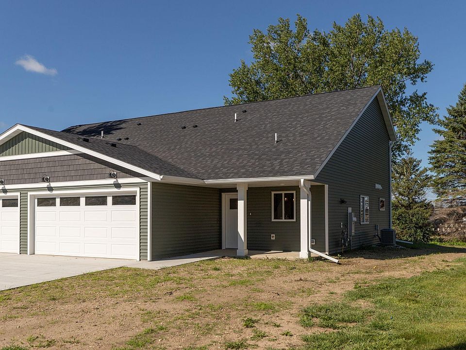 Fantastic New Construction! This beautifully designed 3 bedroom, 3 bath zero-entry townhome offers the perfect blend of comfort, style, and convenience. Once inside, you'll love the spacious open concept layout featuring LVP flooring, cathedral ceiling, and a modern kitchen with granite countertops, a center island, and stainless appliances. The main level also includes a laundry room with extra storage, half bath, and a generous primary suite complete with a walk-in closet and private bath. Upstairs, you'll find two large bedrooms and a full bath with granite countertops. Additional highlights include an insulated two-stall garage with storage above, a nice concrete patio, and new construction warranties.