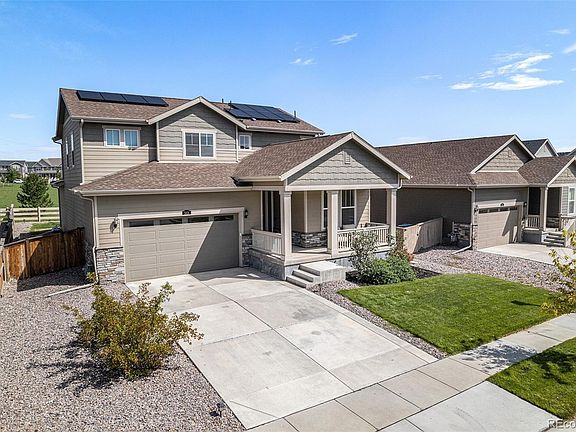 Amazing newer Palisade Park home backing to the park and ready for your move in today! The home is full of upgrades and has barely been lived in! With fantastic access to I-25 to Denver and Loveland/Fort Collins and quick drive to Boulder this home has it all. Enjoy everything this exploding area has to offer, with Top Golf, restaurants, shopping, all kinds of new development, and tons of things to do close by. As you pull up the home you will enjoy the south facing driveway. Upon entry you have a front living room area or study. The open floor plan leads into the kitchen with breakfast bar and formal dining space. The kitchen has all white cabinets, grey quartz countertops, pantry space, and stainless appliances. The warm living room has tons of natural light and a gas fireplace. There are a total of 4 large bedrooms, 3 bathrooms, a large upper-level loft, and huge basement area. The large basement and 3 car garage provide unlimited potential for game room, work out space, storage, crafting, workshop or whatever your specific needs are. The covered back patio looks over the beautiful park and fenced yard with amazing sunsets. This home is extremely energy efficient and has a full solar system to keep your monthly expenses extremely low. This amazing newer home is ready for quick move in.