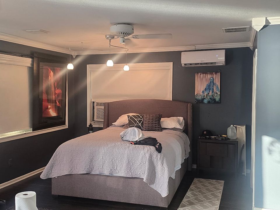 Washer dryer on property, all utilities paid by the homeowner. Smart TV in the bedroom with streaming services Wi-Fi included. Mini fridge hot plate and microwave inclusive as well. Storage available and off street parking.