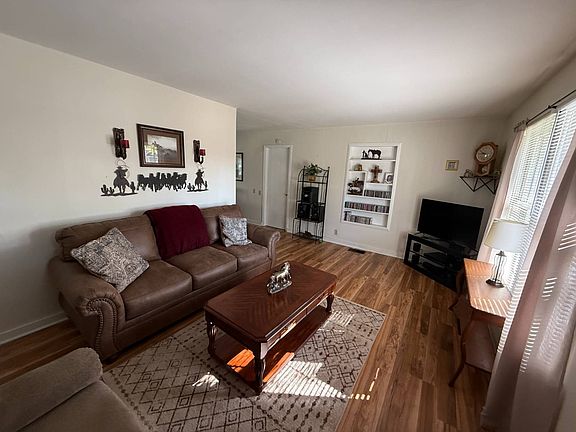 Welcome home to this charming 2-bedroom, 1-bath gem that's been beautifully updated and lovingly maintained. Featuring laminate flooring throughout and a spacious, fully fenced yard, this property is perfect for anyone seeking comfort, value, and a little extra space to make their own. Step inside to a bright and inviting living room filled with natural light from two large windows. The open flow to the eat-in kitchen makes entertaining easy and cozy. You'll love the modern kitchen updates - including newer cabinets, above-range microwave, refrigerator, and faucets - all completed within the last five years. The bathroom has also been refreshed with a new toilet and shower surround, and you'll find other thoughtful upgrades throughout: a new front door, new garage door and opener, heat pump, hot water heater, and new roof on both garages. Even the light switches and outlets have been replaced! The attached one-car garage includes washer and dryer hookups with easy access directly from the kitchen. Out back, the second garage offers wonderful versatility - ideal for a craft studio, workshop, or extra storage for lawn and garden tools. Both bedrooms feature ample closet space, and despite its smaller footprint, the home feels surprisingly roomy and comfortable. This move-in ready home is perfect for a retired couple looking to downsize or a young couple ready to start their homeownership journey. You can't rent for what you can buy this home for! Call today to schedule your personal tour! It is ready for you to move right in.