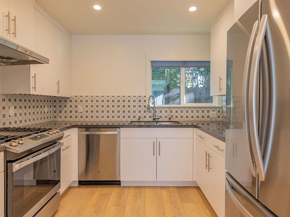 Meticulously remodeled duplex with wood laminate floors throughout, beautiful tiles in kitchen and bath as well as quartz countertops..the list goes on. Freshly landscaped shared backyard with fire pit as well as private patio with Mountain View's. Back unit available now.