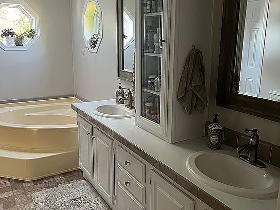 Roomy and bright home with spectacular Lake views. All dry walled home with newer furnace, central air, hot water tank, decks/porches, stainless steel black appliances, paint, updated bathrooms, 10 year old roof, circle driveway for extra parking and 1 1/2 car garage with tons of storage, walk in closets. Prime corner lot in The Lakes Estates Kimball Michigan.