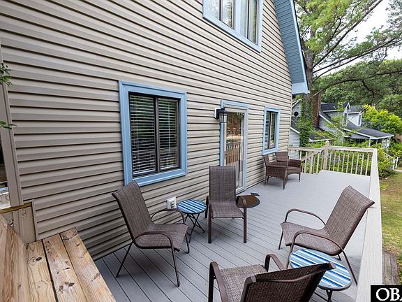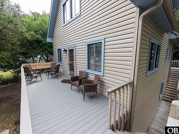 Since the day it was built, this second home has been enjoyed and cared for by the same family. Now it's time for the next family to find their happiness in this 4 bedroom home located in the very popular, centrally located subdivision, First Flight Village. Many recent updates include a composite front deck, staircases with leaf guard gutters above, stainless appliances, quartz counters, under cabinet lighting, LVP flooring, bath cabinetry and faucets, ceiling fans...the list goes on! The home has been re-plumbed in 2025 and all polybutylene plumbing has been removed and replaced with PEX. With front and rear open decks, and a screened porch, you can find a breeze on most any day. A new irrigation system was installed after the drainfield was replaced in 2018, new pump just installed and system working well! Top floor feaures two very large bedrooms with a hall bath, main level has the great room, kitchen, a bedroom and a a full bath. The ground level includes the fourth bedroom along with a bonus space that could be a game area, office, or hobby room. A third full bath is located in the single car garage area and is not connected to the other heated area. With recent exterior power washing, including driveway and window cleaning, she's ready to call home! Call your agent and come to see this beauty!