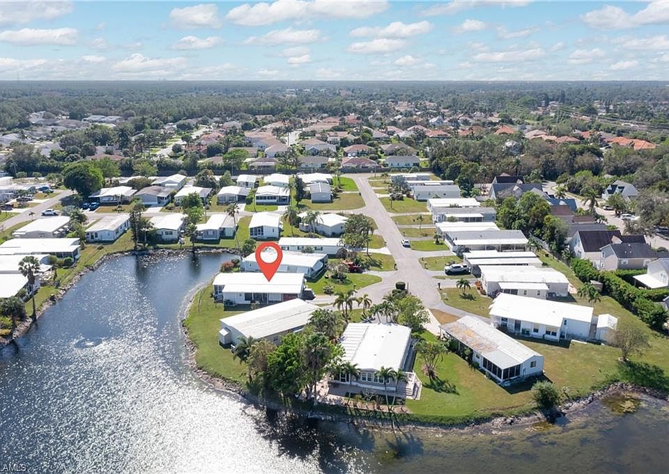 Back on Market! Buyers financing fell through. Beautifully Updated Lakefront Home in Naples – Just 7 Miles to the Beach! This quaint home in a vibrant 55+ community offers modern upgrades, a peaceful lakefront setting, and an unbeatable location. Completely updated, this home features a NEW roof (2022). Brand new hurricane rated windows (2024) and a spacious workshop (2023) Additionally in 2021 the sellers added New anchors, underbelly, heating exchange, skirting, new screened in lanai, and a fully remodeled kitchen with new cabinets and granite countertops. Kitchen also has Stainless steel appliances, new dishwasher and new garbage disposal. Laminate hardwood throughout main living areas and tile in bathrooms. Specious and open featuring 3 bedrooms plus a den. Also, the yard is fenced in so bring your pups! Screened lanai faces East, so grab your cup of coffee and watch the sun rise over the lake. It’s just perfect! Enjoy a low-maintenance lifestyle with HOA fees of just $150/month, which include access to two pools, an active clubhouse, and community events. Best of all, you own the land—no land lease fees! Conveniently located only 7 miles from Naples’ famous beaches and close to shopping, dining, and more, this home is perfect for year-round living or a seasonal getaway. Only one owner needs to be 55 or older to enjoy this incredible opportunity. Don’t miss your chance to own a beautifully updated home in beautiful Naples Florida. Schedule your showing today!