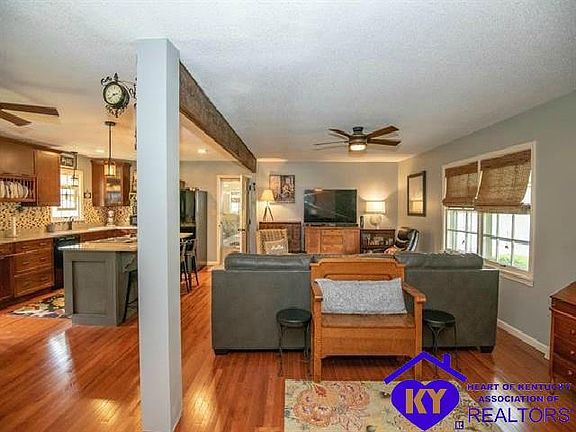 Beautifully remodeled all brick ranch style home features 4 bedrooms (1 in basement w/ no egress), 3 full bathrooms, 2 laundry areas, real hardwood floors, separate living quarters in the walkout basement w/ its own new kitchen & bath , 2nd laundry area w/ concrete drive to the basement entrance that's perfect for an in law suite or Airbnb. Fall in love with the open layout, gorgeous kitchen w/ Quartz counters, soft close drawers & built ins. New barn door for upstairs laundry area. Oversized garage with insulated doors. The seller just replaced the range to a new gas down draft stove & completely remodeled the guest bath w/high end finishes. Beautiful mature trees. Seller is offering a 1 year home warranty. This is a must see home.