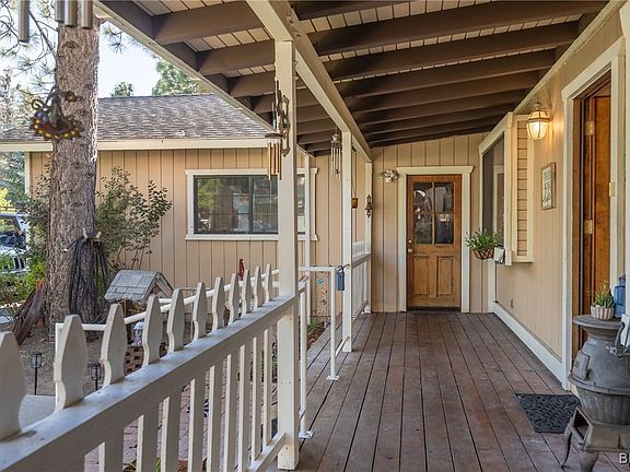 This lovingly adorned cozy cottage sits in the San Bernardino National Forest, birds galore and where natural wildlife abounds. Nestled in a nature lover's paradise on a quiet street in popular Forest Springs. This premier location is further enhanced by providing access to the National Forest hiking trails, both ski resorts minutes away, shopping and restaurants all close by. The truly "great room" features cathedral ceilings, awash in natural light that provides ample space for entertaining family and friends.  Enjoy your morning coffee or an evening glass of wine next to the warmth of a picturesque fireplace staying toasty warm during the chilly winter nights in Big Bear. Whether you're reading a book, enjoying a cup of coffee or watching a movie, you'll enjoy the expansive feel of the living room. This light and bright room connects the open living and dining to a generous kitchen that includes a large central island with expansive wood storage cabinetry.  The perfect ambiance to entertain family and friends. Retreat to the cozy outdoor living area where you can enjoy a cup of hot chocolate or your favorite wine while unwinding from the stresses of everyday life. Enjoy dinner outside while relaxing and watching nature in all its' splendor. Fully fenced to allow your furry family members and kiddos to run and play. You will find two large bedrooms both thoughtfully designed with lots of natural light. Designed with a wall of windows in each, wake up to the feeling of being nestled in the forest. Large closet spaces to store all your goods. Laundry room centrally located. The light and bright large master bedroom offers a large master closet and "Cleopatra" tub.  If you're a sports enthusiast or interested in excess storage, you'll love the oversized garage.  Plenty of room for outside RV and boat parking, very generous concrete pad. Rest and rejuvenate in this turnkey dreamer.