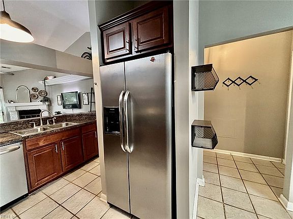 Beautiful 2-bedroom condo in sought after Great Bridge area is move-in ready with many updates. The condo is an upstairs unit all on one level with cathedral ceilings and an open floor plan. Updated kitchen and bath (2020) with granite countertops, beautiful backsplash, stainless steel appliances, lots of cabinets, and eat-in kitchen area. New LVP flooring (2023). Roof (2024). Parking lot redone (2024). Painted throughout (2025). Steps replaced (2025). Sliding glass door to be replaced (2025). Two spacious bedrooms, full bathroom, huge great room with a fireplace that opens to the kitchen. Beautiful view of the pond with fountain from the balcony. Community pool, clubhouse, ground maintenance, and trash pickup. Centrally located near shopping centers, schools, parks, restaurants, & easy highway access. You do not want to miss this one.