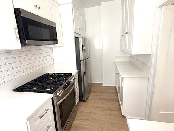 Separate kitchenQuartz countersCeiling fanFull size appliancesNew stainless steel refrigeratorNew stainless steel microwavePull down murphy bed