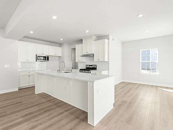 Finished new construction home in Highland Ridge on above average lot size of .23 acre. Columbia floorplan with covered porch, patio, white cabinets, quartz countertops, LVP in living room and study, study, tile backsplash, gas range, soaking tub in owner's bath, fan prewires in every bedroom. Get the space you need with a larger home in a serene community setting at Highland Ridge.