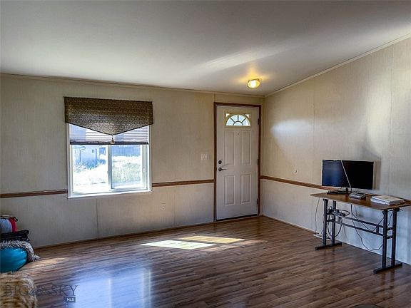 Well maintained single level 2 bed, 2 bathroom manufactured home on a permanent foundation. This affordable home is located on a 0.22 acre lot in Boulder, a quick 30 minutes to Helena, or 40 minutes to Butte. Large gates for back yard access both from the front and rear of the property. Covered porch with easy access from the open floor plan of the living room and kitchen. The master bedroom features a great bathroom en suite with great natural light. This home comes with stainless steel appliances, clothes washer and dryer, a large 24'x10' shed, dog run/kennel, chicken coup (and possibly 2 chickens), some smaller portable solar panels.