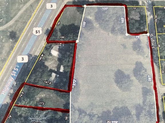 This property has 2 beautiful lots just past Terrace Drive upon the hill. Then, go past the brick home & building on the hill and the property starts and goes to the corner of Garland Ave then, up Garland Ave. House at 513 Garland Ave. has been torn down. (505 Garland not included) then, turn right on S. High vacant land to back of homes on Terrace Dr. Basically, all the vacant land on corner of Hwy 51 & Garland & S. High. See photos and map Id numbers. Perfect location for new business!!