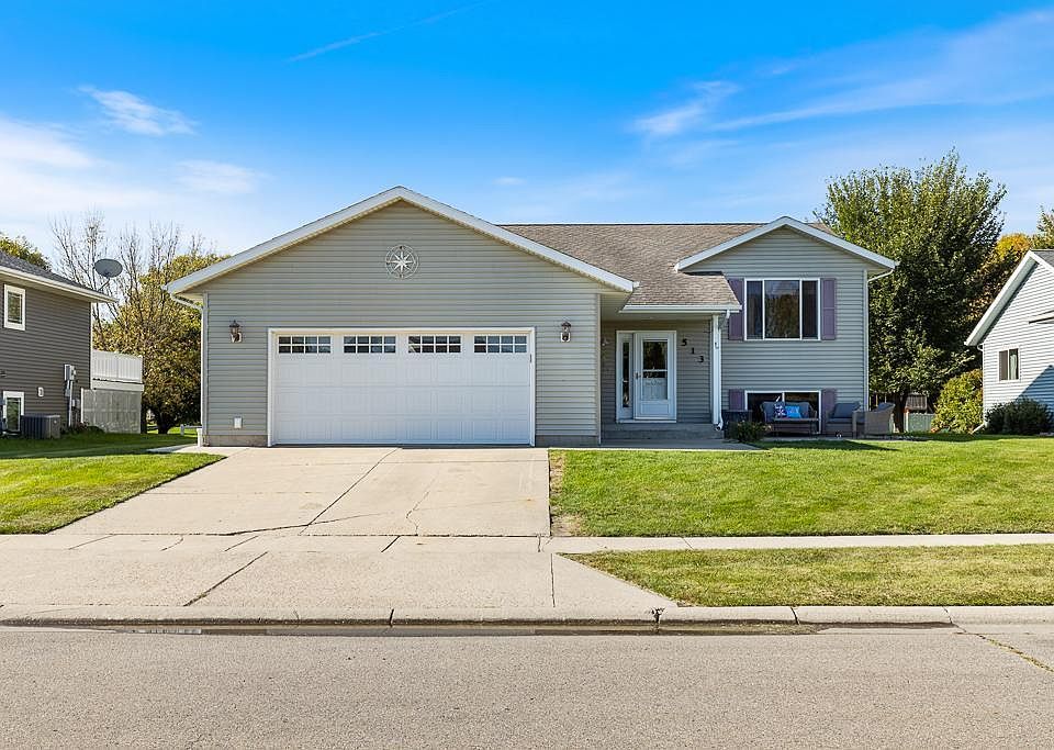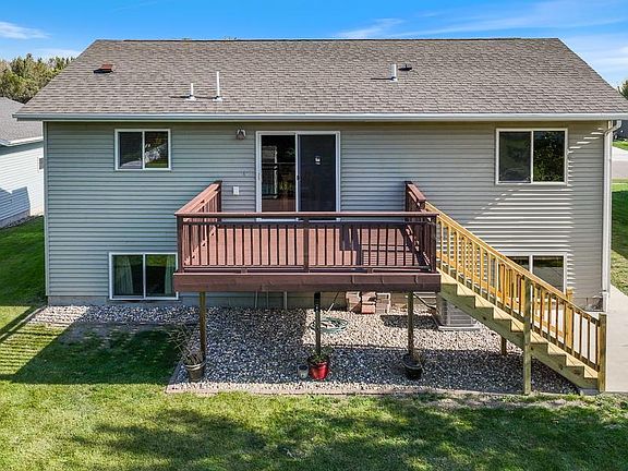 Welcome to this well-maintained 2005 split-level home! The spacious front entry offers direct access to the fully finished, heated 2-stall garage. Upstairs, you’ll find a nice layout with a large kitchen featuring a center island, informal dining area, and inviting living room. The dining space walks out to the freshly stained 12x14 deck with brand-new stairs—perfect for entertaining. The upper level also includes two generously sized bedrooms (primary bed w/ walk-in closet) and a full bath. The lower level provides even more living space with a large family room, 3/4 bath, laundry/mechanical room, and two additional bedrooms. Recent updates include a brand-new AC unit, updated water heater, deck upgrade & finishing, added storage shed with landscaping lower-level bedroom remodels, and a finished/heated garage. Move-in ready and packed with features, this home is designed for comfort and convenience!