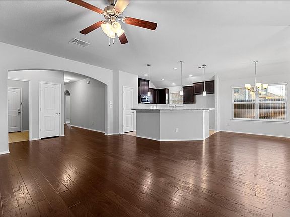 You must see this house! This 3-bed, 2-bath, 1691 sqft house is located in the highly desirable VALOR POINTE - THE RESERVE AT WESTRIDGE subdivision. The large open floor plan starts with a living room featuring a wood burning fireplace and engineered wood flooring. Ceramic tile in wet areas. There are plenty of large windows throughout the house to let in natural light. The kitchen features a large eat-in breakfast area, kitchen island, gas stove oven, microwave, dishwasher, dual sink, disposal, and ample cabinetry. The large primary bedroom is off the living room. The primary bath has his and her's sinks along with a separate shower and tub. Oversized secondary bedrooms. There is a full-sized utility room that includes washer and dryer hook-ups. Front facing 2-car garage. The backyard includes a covered patio that is perfect for entertaining friends and family. Easy access to roadways and highways for shopping, restaurants, schools, and entertainment. Public Driving Directions: From Sam Rayburn Tollway. Turn north on Independence Road. Turn west on Hearthstone Way. Turn south on Hideaway. The house is on the leftside of the street. Private Remarks: Tenant Agents verify school info, measurements, etc. $350 per pet non-refund fee + $40 per pet rent. 30# dogs or less. Cats OK. Pet document must be approved. Tenant pays utilities & lawncare. Appl criteria: Credit score 600+=1-mth rent sec dep; 500-599=1-2-mth rent sec dep; 499 & below denial. Income: 3x mth rent required. 2-yrs verifiable income thru paystubs, employment letter, or tax returns. 2-yrs verifiable rental or mortgage history. No foreclosures, felony convictions, bankruptcies, or evictions within past 7-yrs. Tenant pays $100 portal activation fee after acceptance. No appl fees refunded. All RPM One Source tenants enrolled in Resident Benefits Package for $60 per mth. Includes liability insurance, credit building reporting, up to $1M Identity Theft Protection, quarterly HVAC filter delivery, move-in utility concierge, resident reward program, pest control, & more.