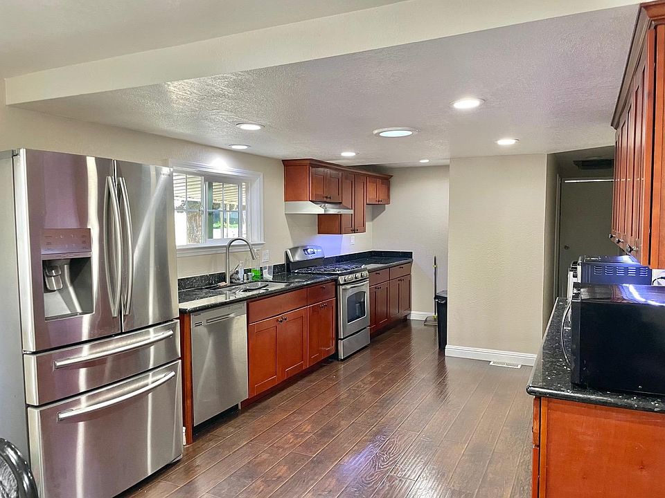 Spacious and remodeled mobile home with 3 bedrooms, 2 bathrooms, and 2 additional rooms (which can be used as extra bedrooms or a home office). Can accommodate a large family in this comfortable 1,440 sq ft of living space. Kitchen features granite countertops, stainless steel appliances including a refrigerator, dishwasher and oven range with gas burners. Dual pane windows and recessed lights throughout. Tile flooring in the bathrooms and laminate flooring throughout the rest of the home. Large, covered side deck for entertaining or just to relax. Carport fits 4 cars. Home is located conveniently across from guest parking. Easy access to HWY 237/880/101. Shopping and plenty of dining nearby.