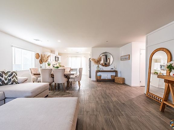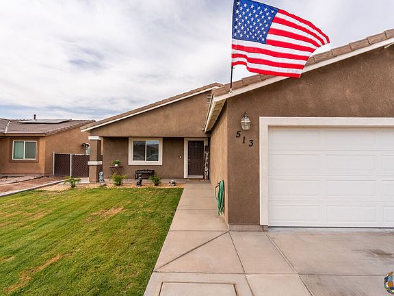 Discover your perfect starter home at 513 Meadow Ct in the City of Imperial! Welcome to this stunning 5-year-old home in the sought-after Russel Court Subdivision. From the moment you step inside, you'll appreciate the new porcelain tile flooring and the open concept design that seamlessly connects the living room, dining area, and kitchen. The living room boasts a versatile wall treatment that adds an elegant touch to the space. The modern kitchen is a chef's dream with white painted cabinets, upgraded hardware, granite countertops, and a custom white granite composite sink with a gold pull-down faucet. You'll find ample cabinet and pantry space to store all your culinary essentials. This home offers 3 bedrooms, perfect for a growing family or for use as an office or playroom. The bathrooms feature new mirrors and updated cabinet hardware, adding a touch of luxury. The laundry room features custom tile for added style. The finished 2-stall garage with epoxy flooring provides plenty of space for your vehicles and storage needs. Step outside to enjoy the backyard with its concrete patio and lush, mature grass. A detached storage shed is included, ideal for storing garden tools. The automatic sprinkler system in both front and rear yards ensures your lawn stays green with minimal effort. Don't miss out on this incredible opportunity. Make 513 Meadow Ct your home today!