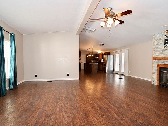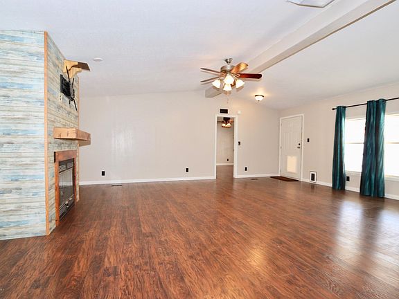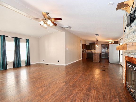 You'll enjoy the many convenient updates throughout this open concept home, including the kitchen, bathrooms, walls and flooring. The spacious, open kitchen includes custom cabinets, stainless-steel appliances, large lsland, decorative splash guards and laminate flooring. The split floor plan and large master suite with updated bathroom including double glass sinks and walk-in closet offers privacy and comfortability. Amenities include: laminate flooring throughtout, gas-log fireplace, wall TV mounts, ceiling fans, interior hand-troweled drywall, vinyl double-pane windows, mud/laundry room, storage shed, workshop (w/air conditioning & electric), vinyl fencing, double carport with gravel parking, RV Parking and a welcoming covered porch for outdoor enjoyment.