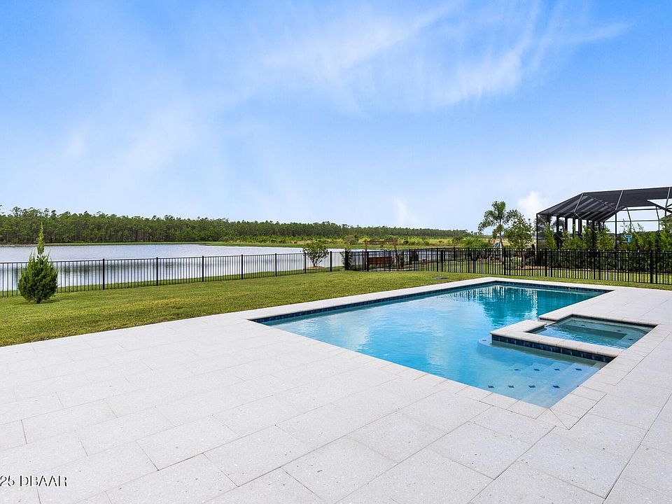 In-law suiteOversized windowsCustom-designed pool and spaPeaceful water viewsFully fenced backyard