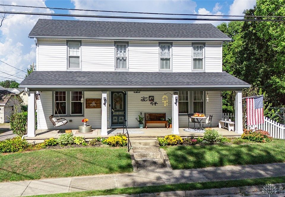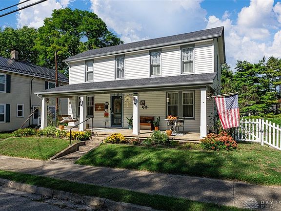 Looking for a older Miamisburg 2 story full of personality and move-in ready condition? Here is it!! This home has incredible curb appeal and beautiful landscaping! This home is within a short, healthy walk to the Mound/schools/library/and popular downtown! Built in 1847 this home does have yesteryear's charm!! Enjoy the large covered front porch from the porch swing! There's a large rear deck (repainted) , oversized 1 car detached garage (with new garage door), all sitting on over 1/2 acre lot with additional rear parking pad!! There's a storage shed with new roof & siding. Enjoy a large living room and formal dining room, gleaming hardwood floors, charming kitchen with new marble counters and with pie safe! The kitchen features new refrigerator, Bosch dishwasher, new microwave and stove stays. There's 1st floor laundry (washer/dryer included) and full bath. 2 upstairs bedrooms, 2nd story bath, vinyl replacement windows, new furnace and central air, updated roof, original (inoperable) fireplace, partial unfinished basement, chimney has been tucked.