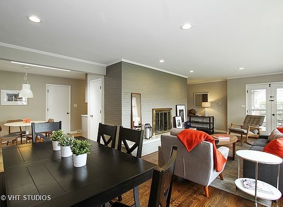 Home Sweet Home! Sleek urban-retro remodel amidst a serene prairie style entry, professionally landscaped, freshly painted & updated for a contemporary yet timeless feel. The wide lot w/ attached garage & circle drive provide plenty of room for parking, ingress/egress to Dee Rd. The north/west exposures allow an influx of sunlight into living/dining rooms which face the lush garden bringing the beauty of the outdoors in. Master bedroom with en suite has double pane windows, his/her closet, freshly painted and ready for your final touches. Large open floor plan leads to eat-in kitchen, completely remodeled, no expense spared, brand new stainless steel appliances w/ 3-yr warranty, soft-close high-end cabinetry tastefully selected by MOOD Design & Build as well as chic new LED can lighting throughout, GORGEOUS refinished hardwood floors on main level. HUGE basement, partially finished w/ fireplace. Outdoor grill & patio space for summer fun- Welcome Home!