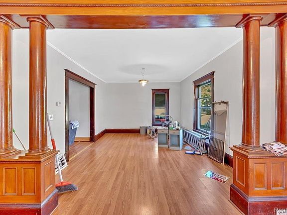 Step into timeless charm with this spacious 5 bedroom, 2 bath home located in the heart of downtown Durand, right across the street from the park. Featuring beautiful mid-century hardwood trim throughout, this home blends classic character with modern convenience.