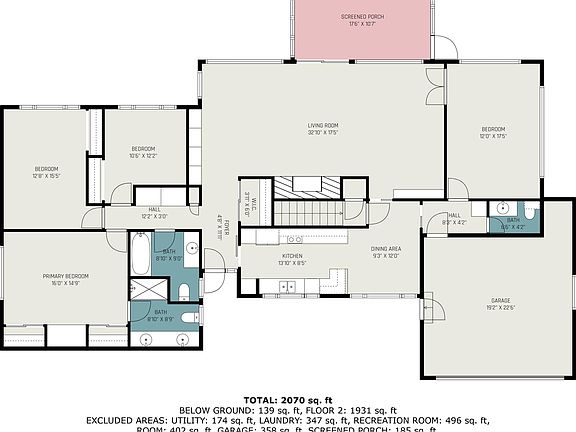 Mid-century ranch with charm! Once the star of the neighborhood and still holds timeless character today. Tucked in a very nice, quiet, well kept neighborhood. This 3 bedroom, 2.5 bath home welcomes you with generous space to gather and relax. Step into a very spacious living room highlighted by beamed ceilings, a statement fireplace that defines the room and a second fireplace for added warmth and charm surrounded by walls of windows that fill the space with natural light and lead directly into the sunroom. . The kitchen and dining room have been freshly painted and feature brand new flooring. Head downstairs and you'll find what was once the neighborhood hot spot featuring a one-lane bowling alley, pizza oven and wet bar. A true entertainers paradise with plenty of potential to make it your own. Homes with this kind of character don't come around often. Make it yours today and step into a space where memories of yesterday meet possibilities of tomorrow and carry the story forward!
