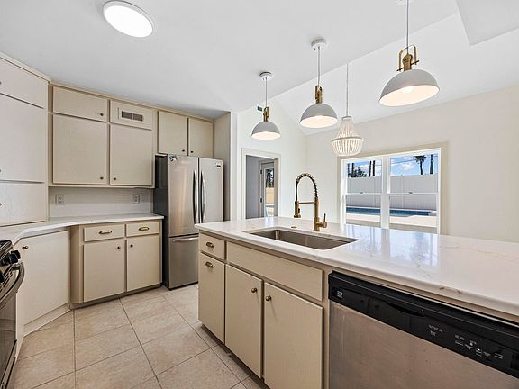 Welcome to this beautifully remodeled coastal retreat that perfectly blends comfort, flexibility, and opportunity. Whether you’re looking for a full-time residence, a second home, or an investment property with multiple income streams, this home offers endless potential just minutes from the beach.  As a primary residence, this home functions as a spacious 4-bedroom, 4-bath property featuring a bright, open layout and modern finishes throughout. The kitchen shines with cream cabinetry, quartz countertops, new stainless-steel appliances, and polished brass fixtures. The living area offers wood-finished flooring, vaulted ceilings, a glass-covered gas fireplace, and views of the pool deck—perfect for cozy beach nights or gatherings with friends and family. The primary suite provides a serene retreat with new light wood LVP floors, a walk-in closet, and a remodeled ensuite bath with custom tile work and elegant matte black hardware.  A spiral staircase leads to a versatile upstairs suite complete with its own bedroom, full bath, and additional room ideal for a home office, studio, or walk-in closet. This area can easily be converted into a private guest suite or rental by enclosing the staircase and adding an exterior entrance.  The garage is already partially converted and includes a kitchenette for conversion into a 1-bedroom, 1-bath apartment, space for a living area, and the potential for a private entrance. Whether used as a guest house, in-law suite, or rental unit, it’s ready for the next owner’s vision.  Outside, enjoy your private fenced backyard oasis with a large swimming pool, patio area, and gated access. The pool area includes a pad and stub-out for an ADU or guest house, allowing for the addition of another income-producing space or a personal retreat. With the current layout, this property can support up to three separate rental opportunities—the upstairs suite, garage apartment, and future ADU—while still leaving the main home with 2 bedrooms and 2 baths.  Recent upgrades include a brand-new roof, new HVAC system, new gas tankless water heater, new pool pump, and new appliances—making this home as efficient and worry-free as it is beautiful. Located in a highly desirable coastal neighborhood, you can walk to nearby restaurants or hop on a golf cart to Surfside Beach in minutes. Short-term rentals are permitted, providing the flexibility to live,  invest, or do both.  The choice is yours—create your own paradise, enjoy house-hacking benefits to offset your mortgage, or transform this residence into a smart, income-producing investment.  Some photos in this listing have been digitally enhanced or virtually staged.