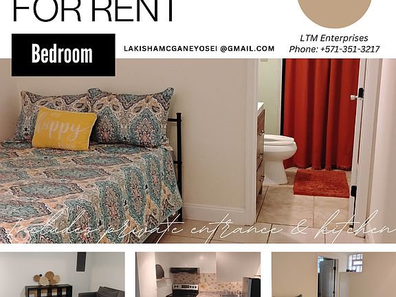 Freshly painted basement unit with private entrance, kitchen, living space, bedroom and bathroom in single family home in quiet neighborhood just 8 minutes from Tanger Outlets, MGM and National Harbor. 15 minutes from Located minutes from the beltway interchange of 495/295/95. Metro bus stop available with limited service. Stairs lead down to private entrance.