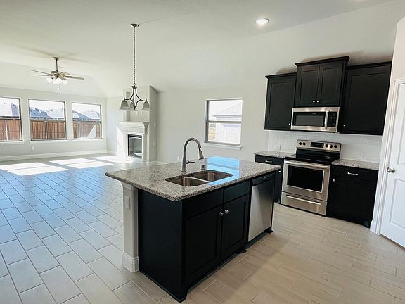 Gorgeous home in the newest Meadows of Morgan Creek neighborhood. Modern open floor plan with 3 bedrooms 2 bathrooms plus an extra study room. This home has wood look tile throughout the all common areas. Kitchen features beautiful granite countertop and stainless steel appliances with 42 inch cabinets . Master bath features double sinks, standing shower & garden tub, his &her closets. Large living with fire place overlooks the backyard. fully fenced and landscaped. Convenient location-few Minutes away from I-30, schools, gas station, and tons of shopping.