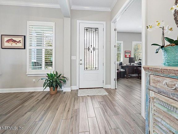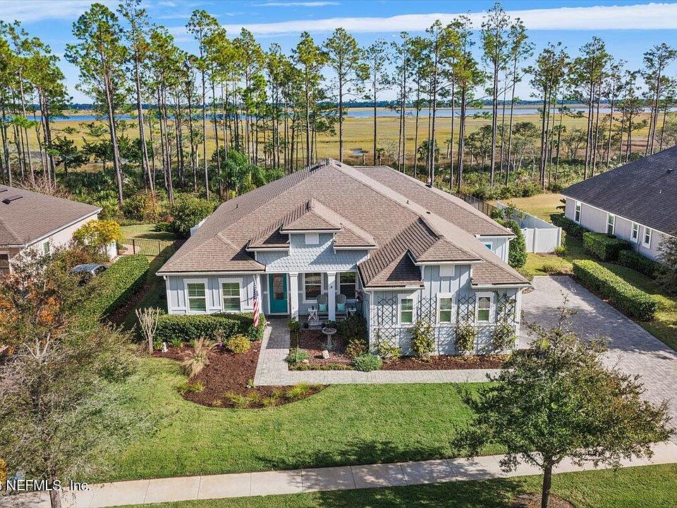 Nestled within the serene confines of Palencia, a wooded & gated community just 20 minutes north of the historic charm of St. Augustine and beautiful beaches....This home boasts a perfect blend of elegance, modern comfort and breathtaking sunrise views over marshlands and intracoastal waterway. 4 bedrooms, 3 full baths, laundry room, office/library room, family room, 3 car garage, brand new Viking appliances, quartz countertops, walk-in pantry, tile floors throughout, soaring ceilings, water softener, reverse osmosis for drinking water & deep well for outdoor landscape. Open floor plan concept. Enjoy the views while soaking up the sun in the heated pool. Each morning, wake up to the gentle glow of the sun painting the sky. This Palencia gem is more than a house...Come see it today The community itself boasts an array of amenities, including three inviting pools, pickleball and tennis courts, and an extensive network of bike and walking paths. Fitness enthusiasts will appreciate the state-of-the-art gym, providing an opportunity for a well-rounded and active lifestyle.