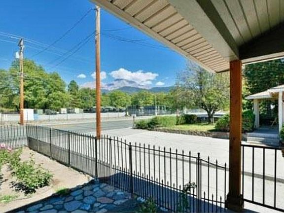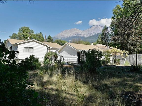 Prepare to be delighted when you walk through the door of this Mt.Shasta charmer! This home is sure to please everyone with it's beautiful finishes. The kitchen is large and inviting with custom counter tops & cabinets & eating bar that is open to the large living room. Beautiful dark laminate flooring throughout, built ins for storage, pocket doors, and HUGE view of Majestic Mt.Shasta from the front porch, front room & bedroom, and from the private and large back yard! The front yard is full of beautiful rose bushes with custom natural rock walking path, all surrounded by a wrought iron fence. The back yard is a template that dreams are made of, room for a garden, possible ADU, and home to grapes, cherries, apricots, pears, apples, peaches, plums, and beautiful & tall lilacs...and you won't believe the view of Mt.Shasta! Very large and bright basement ready for your home office, hobbies, she cave, you name it, heated with a monitor heater and abundant shelving for storage. Detached single car garage with wood storage and chicken coup...and RV parking alongside. And the cherry on top- with an acceptable offer furniture is included!!!! You need to come and take a look!