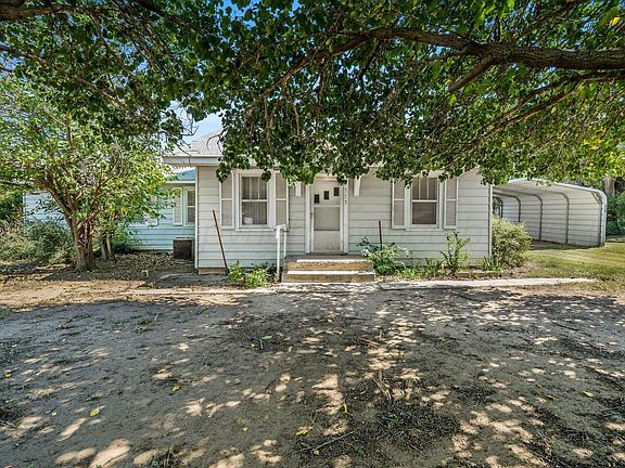 Nestled on a spacious 1.51-acre lot, this sweet little 3 bedroom, 2 bath home is loaded with potential. Inside, you'll find a cozy layout with an isolated master bedroom, walk in closet and attached bathroom. The other two bedrooms are on the other side of the house with a full bathroom in between them. The kitchen window overlooks the backyard and has an island and a little nook for your dining room table. There are multiple outbuildings, a detached garage and a storm shelter. Come take a look at this cute little house with loads of potential.