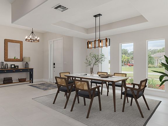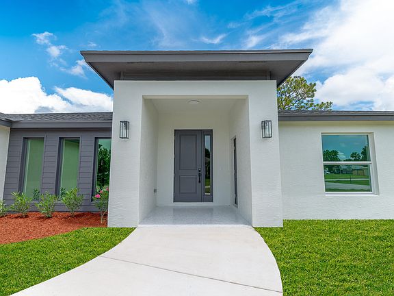 A modern-coastal new build, this 4-bedroom,3-bathroom,2-car garage home was designed with timeless elegance and everyday luxury in mind. Step inside to tray ceilings, wide-open living spaces, & an island kitchen with 42'' shaker cabinetry, warm wood accents, stone countertops, tile backsplash, & premium appliances--the perfect blend of style and function. The owner's suite featuring a spa-inspired bath with a free-standing soaking tub, rainfall shower, dual vanities, and walk-in closet. Enjoy Florida living with a covered lanai & cabana bath access, room to add a pool. Built with impact-rated windows & doors, mold-resistant walls, concrete block construction, & energy-efficient systems, this home offers luxury and peace of mind. Located on a quiet street, minutes from Crosstown Parkway, shopping, dining- convenience without sacrificing tranquility. Every detail is chosen for comfort, quality, and modern design -an elevated coastal home that stands out from ordinary new construction