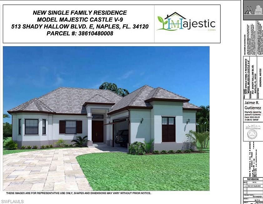 This NEW CONSTRUCTION Majestic home is in one of the best Lot/locations in the area, close to Publix shopping center, schools, the new Big Corkscrew Island Regional Park and The Corkscrew Sanctuary is just down the road. With 3 bedrooms, PLUS DEN and 2 baths, this brand new home sits on 2.73 acres of rare to find 100% UPLAND in the sought out area of Naples on Shady Hollow Blvd. This single family home offers an open floor concept and split bedroom floorplan. With volume ceilings, impact resistant windows, 42” shaker style wood kitchen cabinets and vanities, quartz countertops, Stainless Steel kitchen appliances, French Door refrigerator with water and ice dispenser, 24X24 porcelain tile throughout, long paved driveway and serene views of the surrounding natural habitat. Plenty of room for a pool and creating your own food forest. Expected completion July 2023.