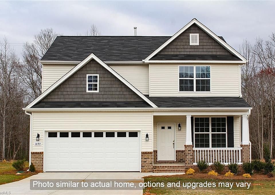 Located in the sought-after Rogers Farm Community in Pleasant Garden, this Bailey floor plan offers an inviting open concept layout designed for modern living. The kitchen features a large island, perfect for cooking and entertaining, while the main level primary suite provides comfort and convenience. Enjoy the outdoors from the screened porch or back deck, overlooking a pool-friendly lot with off-site septic. Upstairs, discover three additional bedrooms and a second living space, ideal for relaxation or guests. Set in a peaceful rural area with no city taxes, this home is just 15 minutes from the Toyota plant and 20 minutes from downtown Greensboro.