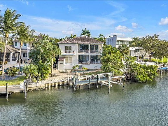 Welcome to coastal living on Siesta Key. Set along a peaceful canal, 513 Venice Lane blends relaxed comfort, making it ideal as a full-time home, vacation property, or income-producing retreat. With 5 bedrooms, 3.5 baths, multiple indoor/outdoor living spaces, a heated pool with spa, and private dockage, this home captures the best of waterfront living. The main level features two bedrooms, bright open living spaces, and a welcoming kitchen with white cabinetry, granite countertops, stainless steel appliances, and a cozy nook just off the dining area. Plenty of built-in cabinetry creates extra storage and serving space for gatherings. Upstairs, a second entertainment lounge offers room to play and unwind, complete with arcade games and a wet bar outfitted with a sink, microwave, and mini/wine fridge. Just beyond, a large balcony opens to a beautiful waterfront setting with comfortable seating and a fire pit. An outdoor kitchen with grill and sink makes alfresco dining easy year-round. Multiple balconies at the front and rear of the home invite you to enjoy cool breezes and quiet moments. Outside, the in-ground heated pool and spa sit right along the canal for a true resort feel. A private dock and 13,000-lb boat lift provide quick access through the Grand Canal. It is approximately 5 minutes to the bay. Five bedrooms and three full baths offer flexibility to host family and guests, while the convenient downstairs half bath is ideal for pool days. The layout works beautifully for full-time living or seasonal enjoyment with strong rental potential. Located close to Siesta Key Village, beaches, and local marinas, this property places dining, shopping, and island favorites within easy reach. Warm, welcoming, and ready for life by the water, 513 Venice Lane invites you to enjoy a lifestyle that feels like vacation every day.
