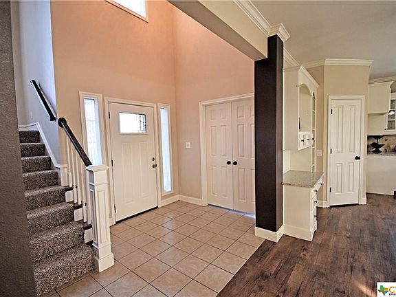Looking for a home on the Northside of Victoria? Look no farther than this beautiful, 3 bedroom/2.5 bath home in Lago Vista. From the moment you drive up, the curb appeal welcomes you and draws you in. As you enter the home, you will notice the open concept design, new vinyl flooring, and contrasting accent columns. The first floor features a master suite with a spa-style bathroom that boasts dual sinks, a built-in vanity, whirlpool tub, and separate shower, as well as a large walk-in closet. A home office, half bath for guests and laundry room complete the lower level. The second floor plays host to two bedrooms and a full bath. The large yard features a back patio and small storage building. Brand new roof and new inside AC unit. Exterior AC unit less than 3 years old.