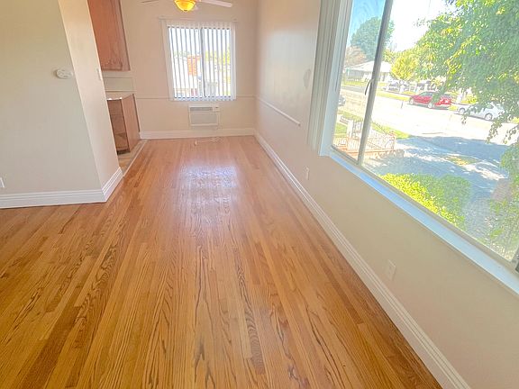 The beautiful Courtyard Villas in Ontario features a large lushly landscaped center courtyard area with fountain, manicured landscape and huge pool. Property also features two community laundry facilities, gated parking area with assigned covered carports with storage available for $45/Month. Extra large 1 bedroom, 1 bathroom unit with Fresh paint, wide custom baseboards, hardwood floors, window coverings, and ceiling fans.