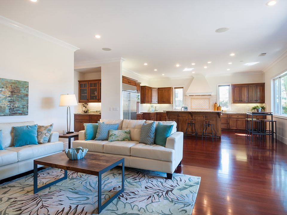 Welcome to your dream home! Stunningly updated 2-story house in the heart of El Segundo. Gorgeous curb appeal from the beautiful landscaping to the wrought iron glass front door of this impeccable home. The elegant living room features a grand fireplace and impressive cathedral ceilings. Separate formal dining area for your dinner parties! Beautifully remodeled open plan kitchen with Quartz countertops, custom cabinets, stainless-steel appliances, large center island with sitting, and double desk area overlooking the gorgeous backyard. Ample cabinet storage, mini bar area, and butlers walk-in pantry. Kitchen opens to a spacious family room with modern corner fireplace and sliding glass doors that lead to the outside oversized patio space. A dramatic staircase leads you to the upstairs bedrooms and bathrooms. The elegant and spacious primary suite has a wood burning fireplace, private balcony, and walk-in closet. The en suite bathroom has generous double sinks with plenty of cabinet space, a walk-in shower, and jetted tub. This home also features tasteful light fixtures, crown molding, ceiling fans, recessed lighting, and surround sound system! Enclosed backyard with built-in barbecue.