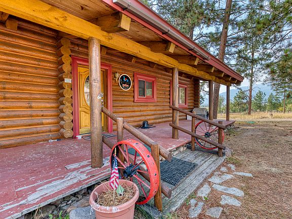 This unique log home is set on just over 4 acres and offers amazing and unobstructed views of the Bitterroot Mountains and a country feel. On the main level of this home you will find a large open living/dining area and vaulted ceilings, with a substantial rock hearth and wood stove. The upper loft area provides an arched entry into the master bedroom and bath with gorgeous cedar accents and a claw foot tub. The lower level of this home has an unfinished walk-out basement that is ready for all your ideas. The property includes 2 large shops, one of which has shelving and a built-in workbench. Plenty of room for storage, hobbies and recreational vehicles. There is also a ditch that runs along the lower edge of the property. 2020-10-01