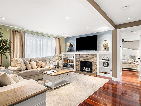 513 Woburn St is a modern farmhouse exuding charm and sophistication. This cape-style home boasts a large fireplace living room that provides a cozy gathering space. The residence features 3 spacious bedrooms and 2 elegantly designed bathrooms. The stunning kitchen is perfect for culinary adventures, while the first-floor primary suite offers a walk-in closet and en suite bath for ultimate comfort. A nautical-inspired staircase with shiplap leads to two generous bedrooms with cathedral ceilings on the second floor, ensuring ample space for all. The fenced, private backyard is an entertainer's dream with a patio, firepit, and a large shed for extra storage. Extended parking and a one car garage under with the potential to finish the basement. Experience a perfect blend of modern convenience and timeless elegance in this beautiful Wilmington property. Property to be delivered furnished.