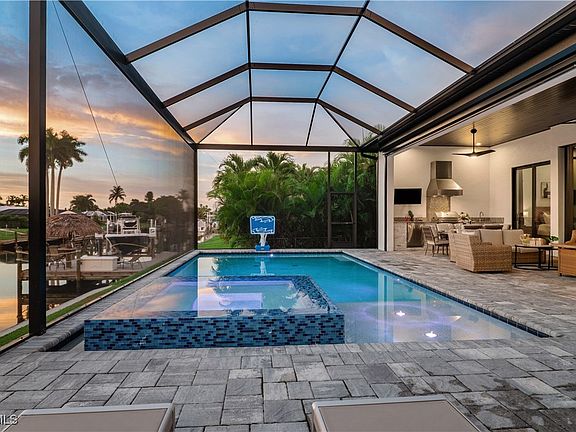 The picture window screen enclosure offers unobstructed water views, while the spacious under-truss lanai features a full outdoor kitchen, dining space, and lounge area, perfect for entertaining. Boaters will love the direct access with no bridges or restrictions, providing quick access to open water, Sanibel, and the Gulf of America. The property features a wraparound composite dock with a lift, canopy, and fish cleaning station for enjoying the best of Southwest Florida boating and fishing. This Cape Coral waterfront home features hurricane-impact windows and doors, bonus motorized shutters in the back, and energy-efficient construction, providing enhanced security and lower insurance costs. Offered furnished and move-in ready, this is your opportunity to own a luxury Gulf access pool home in one of Cape Coral’s most desirable waterfront neighborhoods. BEACH BOATING AND LUXURY. Located moments from NEW Bimini Square, The Cove, Slipaway, and the Yacht Club’s revitalized marina and expanded beach, this residence offers unmatched proximity to Cape Coral’s most exciting waterfront dining, entertainment, and boating destinations, with more on the way!