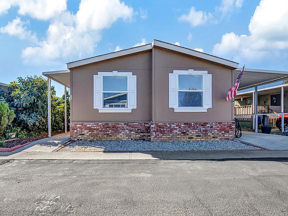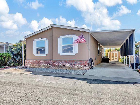 This fabulous manufactured home features three spacious bedrooms and two full bathrooms. The bright, open floor plan allows natural sunlight to fill every room, showcasing a traditional living and dining room combination, a generous primary suite, double-pane windows, a newer HVAC system, and a large kitchen with ample cabinet space. The interior and exterior have been freshly painted, adding to its inviting appeal. Additional highlights include an in-home laundry room, a covered two-car driveway, and a large backyard shed for extra storage. Enjoy entertaining guests in your backyard or by the community pool. Ideally located near park amenities, with easy access to major highways and shopping. Don't miss your opportunity to make this beautiful home your own!