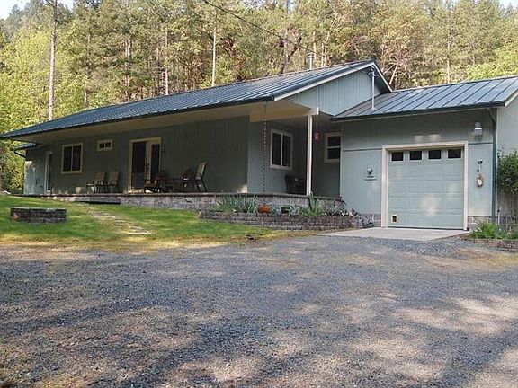 Over 20 acres with Foots Creek flowing through, open the windows or relax on the front porch and you'll hear the sound of the creek flowing over the rocks. This beautiful home features 1567sf, 3 bedrooms, 2 baths. The kitchen features beautiful cabinetry with large tile counter tops, beautifully crafted wood breakfast bar, large walk-in pantry, laminate flooring flows through most of the home. A really nice size master bedroom with large walk-in closet and a fabulous master bath with tiled flooring. The guest bath features a claw foot tub and pedestal sink. Walk across the bridge over foots creek or drive around to the 22x40 workshop/garage. Covered RV parking. Up behind the home is an area where an rv & make shift living space was located and lots of trails for riding your quad or hiking. Property borders BLM on 2 sides. You'll enjoy private country living while only being 15 minutes to I-5.