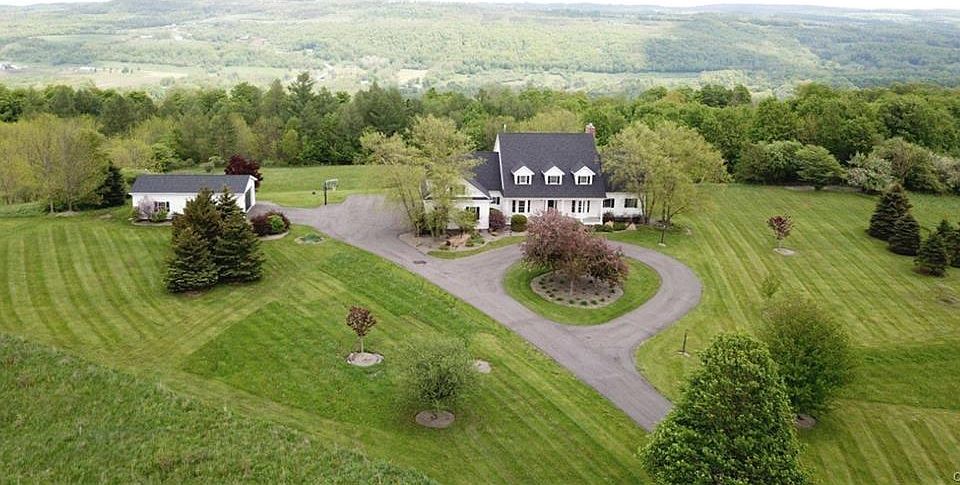 Sweeping views, privacy & peace on 12 acres yet only 3 miles to the quaint village of Caz, award-winning schools & lake boat launch. 30 min. to SYRACUSE. Nothing has been spared to meticulously update & maintain this home. Light pours into the spacious family room/kitchen with captivating views. Private first-floor master suite w/ spacious master bath & walk-in closet. Gleaming hardwoods, granite, quartz, high-end appliances, entire house generator all the bells and whistles here. Intimate spaces, architectural details, and unique touches.. Finished walkout w/home entertainment theater add 1000 square feet of additional space. Separate heated 6 car detached garage/workshop for all your toys! Room for horses, chickens, mini farm! Fresh paint, new roof & re-topped driveway. Move-in & breath.
